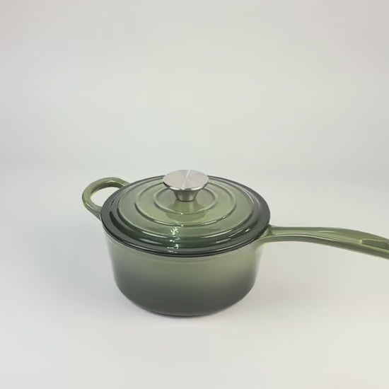 The 19cm Matcha Enamelled Milk Pot is ideal for small to medium daily cooking.