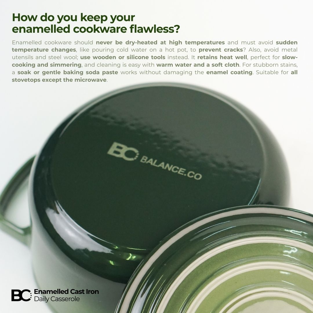 Balance.co 21cm Matcha Enamelled Daily Casserole 2.8L | Stew Pot /Soup /Braise /Induction Compatible