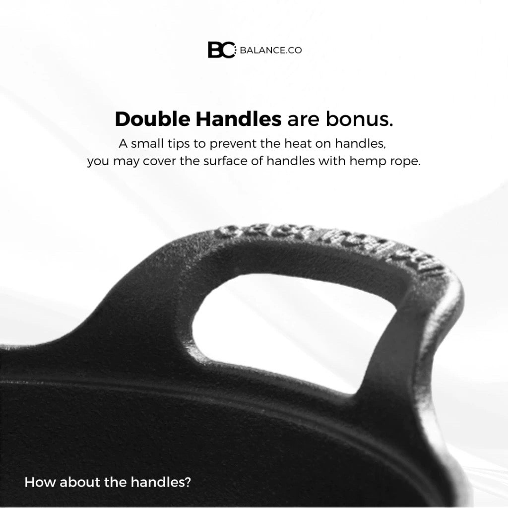 The large, upward-curving handles are designed for easy lifting and moving. The seamlessly casted handles provide a comfortable grip and enhance the cooking experience. -