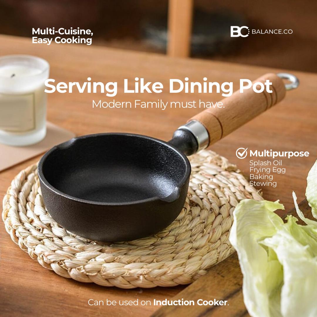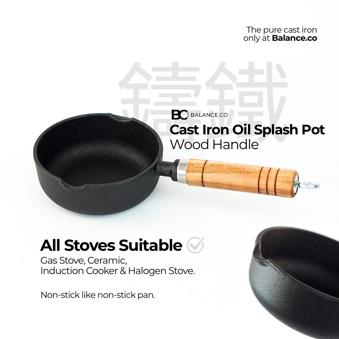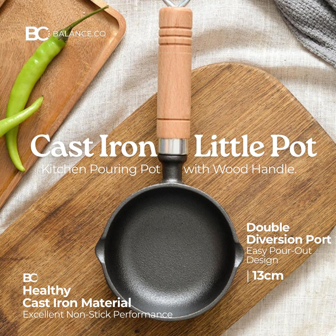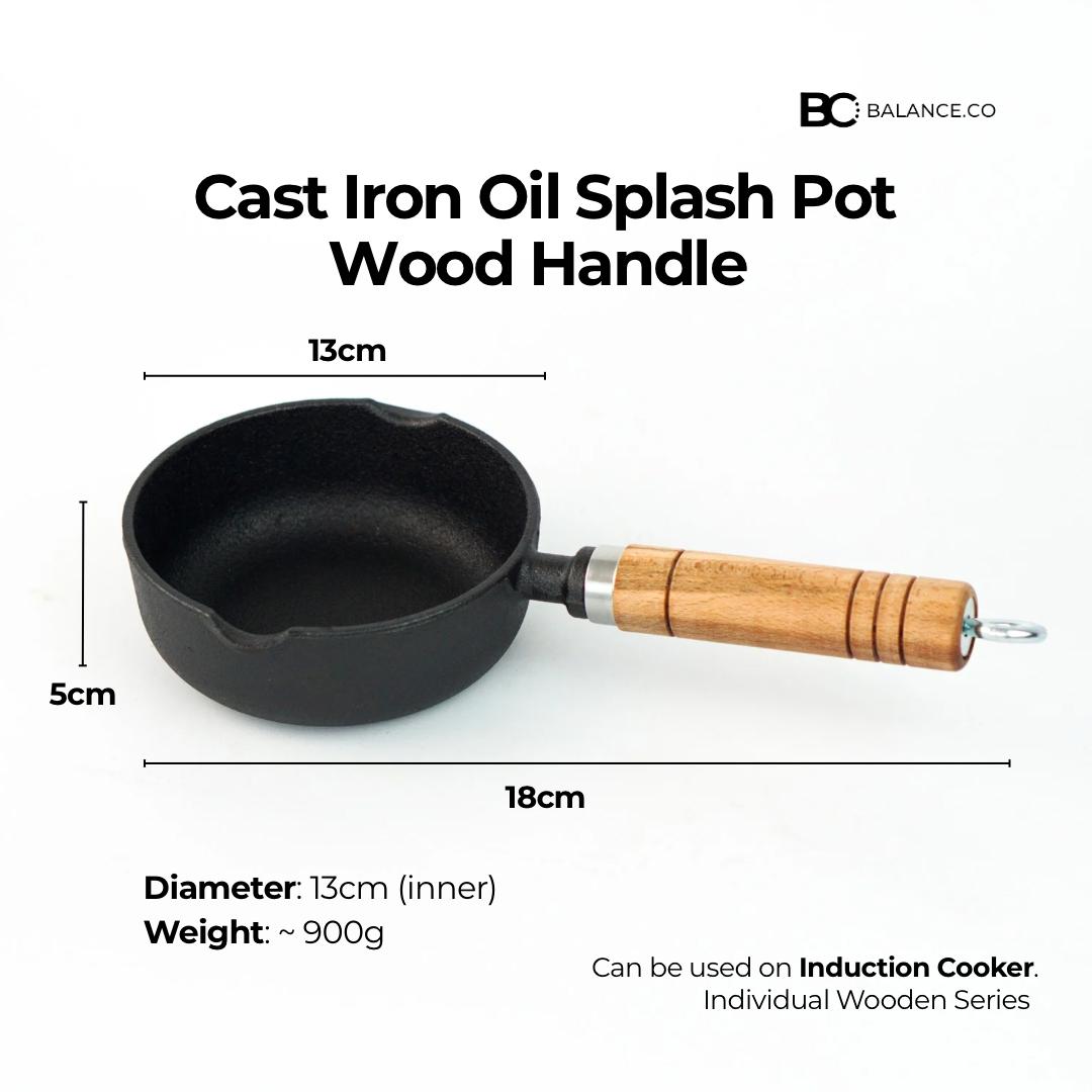 13cm Cast Iron Mini Oil Splash Pot – Hot Oil & Egg Pan with Wooden Handle